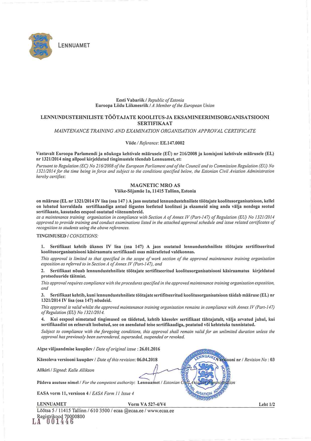 EASA Part 147 MTO Approva...