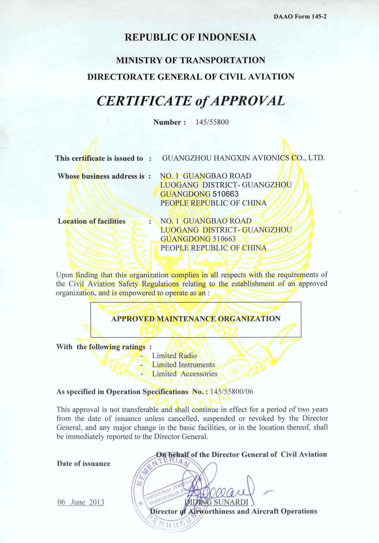 EASA Part-145 approval ce...